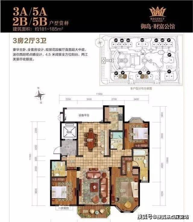 面积:181-185㎡户型:3房2厅3卫▼