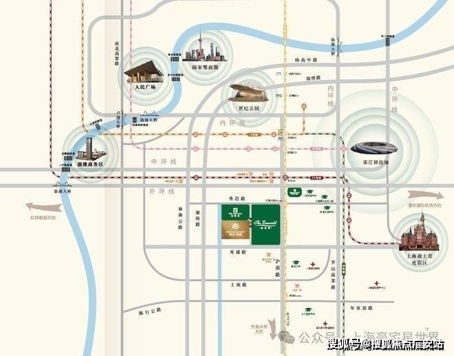 项目周边5公里半径内聚集3条地铁线,中环线、杨高路快速路、S20等道路交通快速通达全城大部分核心地段。