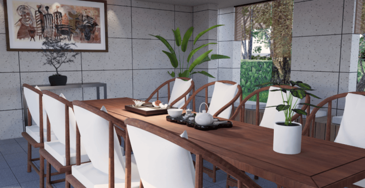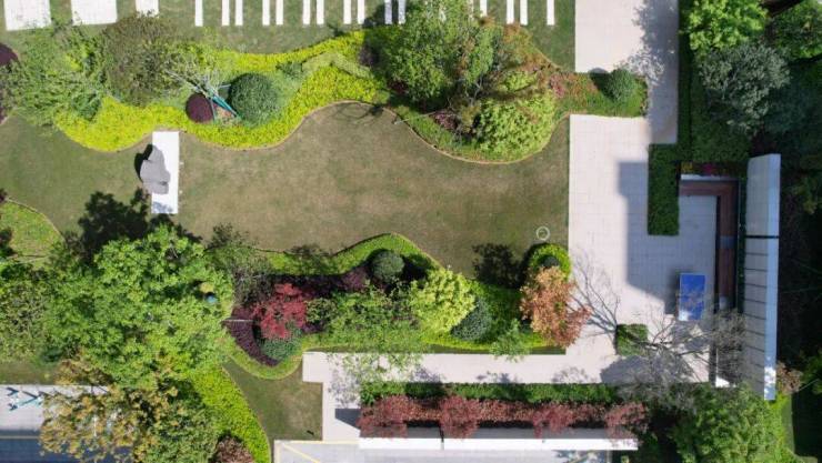 外有天然水系生态赋能,在内部景观上采用简洁纯粹的设计原则,让生活回归自然,打造三重迎宾景观。贯穿大区的林荫纵轴,巍峨高耸,生机蓬勃。当我们行走其中观赏树木,树木亦会被我们赋予关于时间记忆的情感。从夏日的枝繁叶茂到寒冬的枯枝败叶,寒来暑往间,陪伴我们度过一个又一个年头。整个大区的植物景观配合各季节特色植物,打造四季主题花园,利用不同植物营造差异化景观,让居者四时皆有景可赏。宅间与入户景观则遵循开敞精致的原则,以不遮挡采光的低矮植物为主,辅以精致的植物组团,塑造温馨浪漫的归家感受。
