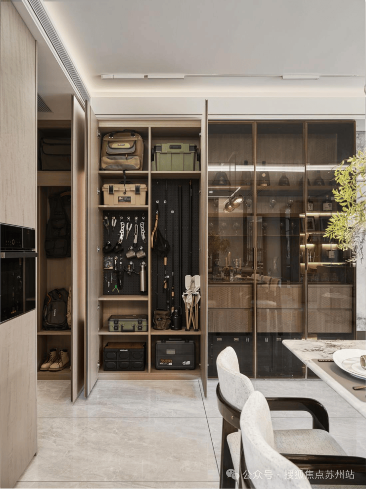 保利·海上瑧悦约130㎡的空间实地模拟居住中会出现的收纳场景,打造约 2.25mx2.4m的超体量玄关柜,为生活扩容,可容纳约56个20寸行李箱……,而 玄关柜、岛台、卫生间镜柜、主卧衣帽间等空间,把更多隐藏空间打造成超级收纳功能,让未来的生活井井有条。